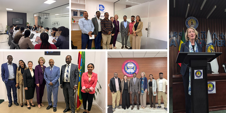The e-SHE team met with Arizona State University delegates Dr. Kristin Lord, Vice President for Global Strategy and Engagement (Office of University Affairs), and Dr. Kim Welch, Principal International Instructional Designer and Trainer at EdPlus, last week at Shayashone. The discussion focused on the progress and impact of the e-SHE program, as well as potential plans for scaling up the initiative. The delegation also met with Ministry of Education — Ethiopia higher officials, the Mastercard Foundation, and visited Addis Ababa University and Dire Dawa University, where they met with university leadership and toured the multimedia studios.